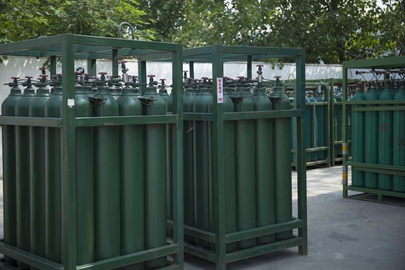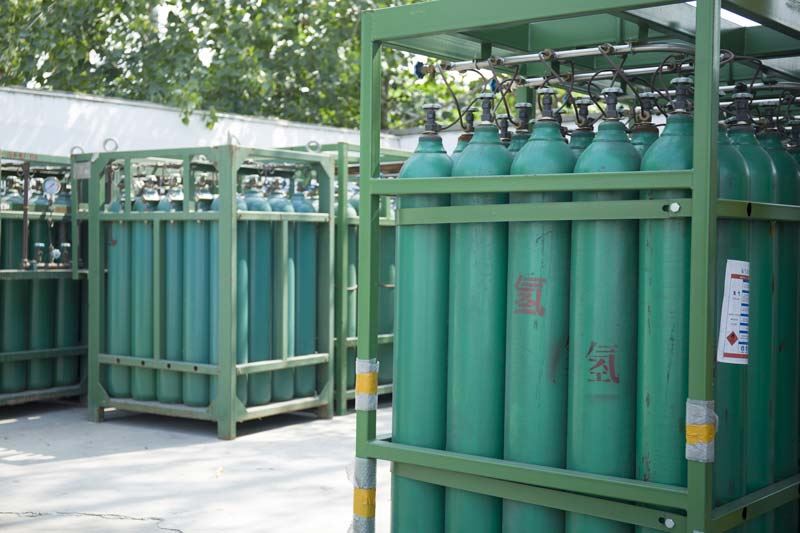 气瓶全部采用免拆卸使用新型安全瓶帽,每只气瓶粘贴有气瓶可追溯系统二维码,方便气瓶管理;气瓶充装前全部做抽真空处理,大力推广使用气瓶散装格吊装运输装卸气瓶,提高安全系数,降低工人劳动强度。